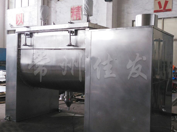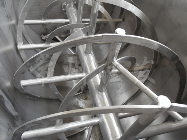 該機型由容器 螺旋攪拌葉片和傳動部件組成,螺旋葉片一般做成雙層或三層,外層螺旋將物料從兩側(cè)向中央?yún)R集,內(nèi)層螺旋將物料從中央向兩側(cè)輸送,形成對流混合。容積可做成圓形,以便夾套及于反應(yīng)干燥。