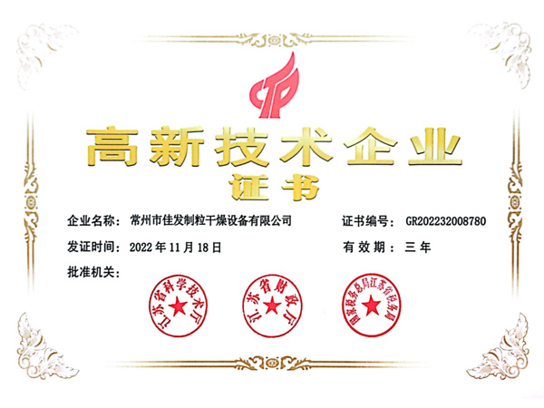 High tech enterprise certification certificate